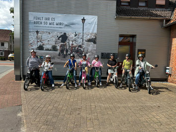 In diesem Jahr ging es mit einem kultigen Gefährt auf Tour. Mit dem Mofa umrundeten die Asendorfer Damen Marklohe, meistens auf wenig befahrenen Wegen. Der Spaß war vorprogrammiert. An der Marina Mehlbergen, einem idyllischen Hafen in einer ehemaligen Kiesgrube mit Anbindung an die Weser, war anschließend ein gemeinsames Kaffeetrinken angesagt.