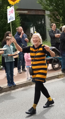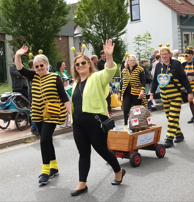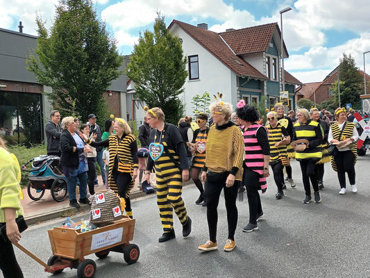Am Freitagnachmittag hallten drei Böllerschüsse über Bruchhausen-Vilsen, der Startschuss für den 380. Brokser Heiratsmarkt und der Beginn von fünf Tagen Ausnahmezustand im Flecken. Diesem Festeinstieg folgte am Samstag „erstmals“ ein Festumzug mit über 70 Gruppen. Wie ein Lindwurm zogen abwechselnd Fußgruppen und Festwagen unter dem Jubel der Bevölkerung durch die Straßen. Auch die LandFrauen Hoya waren unter den rd. 1.500 Teilnehmenden, verkleidet als Bienen repräsentierten sie das Erkennungszeichen der LandFrauenbewegung, ihr Motto: "Die Bienen sind los!"